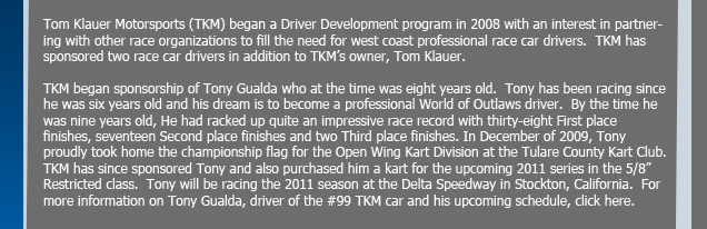 :. July 24, 2011 - Tom Klauer grabs another Top Ten Finish in Portland! Thank you for your support! (Click Here) |